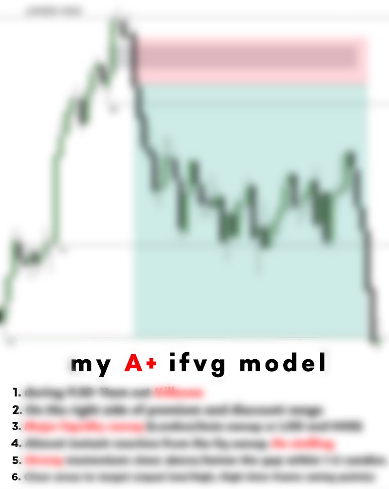F*ck it, I am revealing the model, the checklist, and my 80% WR setup I have listed every important thing to look for when trading IFVGs and to only take the BEST POSSIBLE SETUPS This model makes me 10k+ every single month. Like, RT, and comment the word “IFVG” and I’ll send…