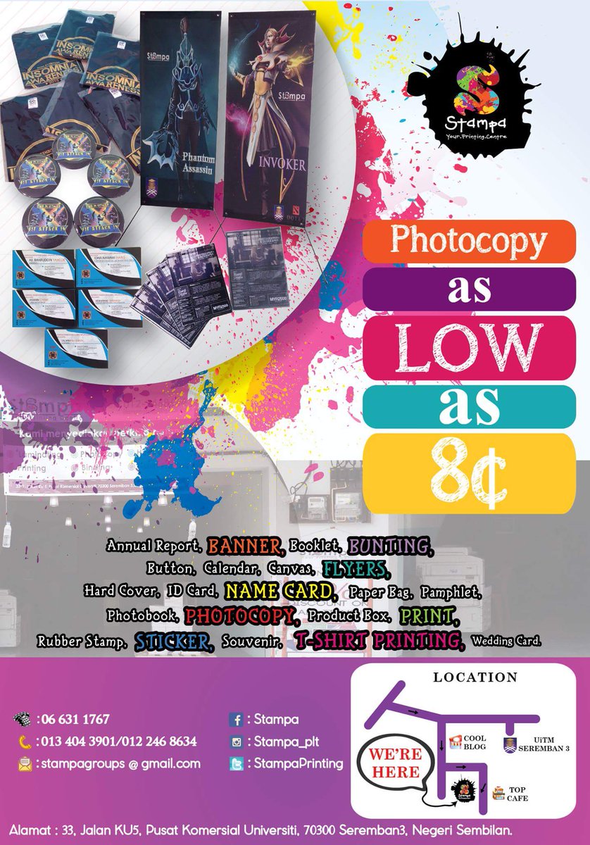 Banyak sangat assignment? Tak tau nak print mana? Visit @StampaPrinting Service mmg tiptop, murah, berdekatan uitms3 👍🏻
