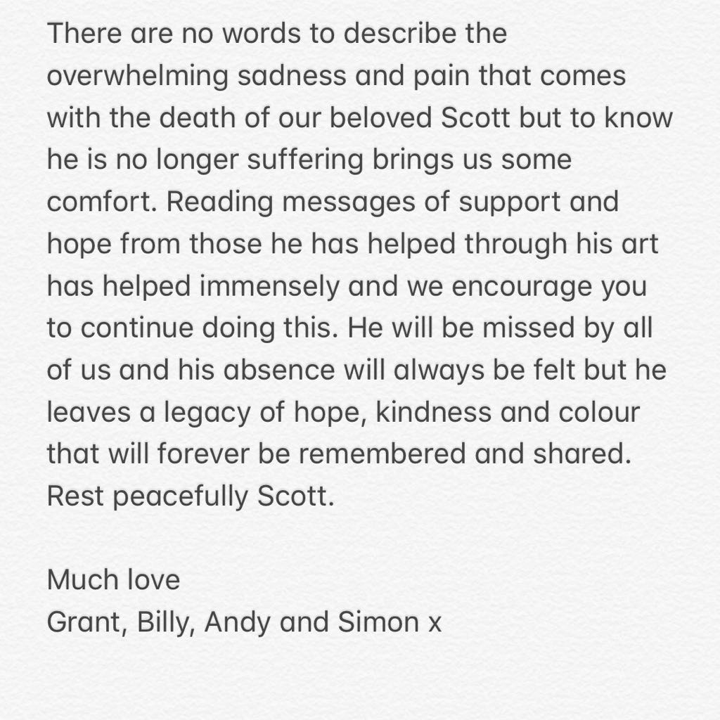 If you see this Scott, please call this confidential number (116 000) to talk to someone. We just want you to feel better and safe and fully understand if you need time to yourself right now. We are worried and we love you so so much.
