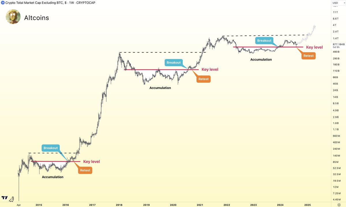 As long as it holds the key support level it just bounced from, the total crypto market cap excluding #BTC still looks solid overall.