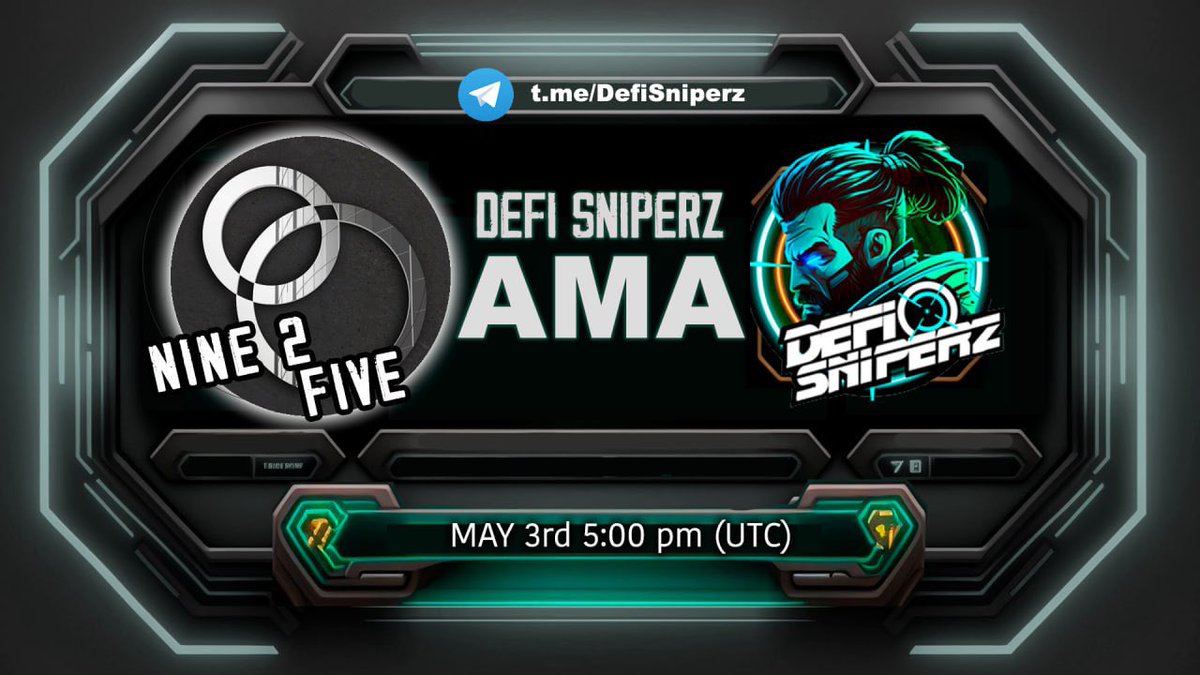 ✅ NINE2FIVE ✅ JOIN THE DEFI SNIPERZ NEW DEPARTMENT ➡️ JOIN US IN THE: DEFI SNIPERZ t.me/DefiSniperz 👉WHEN: JUNE 1st 👉TIME: 3pm UTC 🚀 LEARN ALL ABOUT THE NEW DEPARTMENTS IN NINE2FIVE 🚀 GET ALL THE NEWS AND TRADING UPDATES AT THE AMA nine2five.tech/?ref=0x5c0846f…