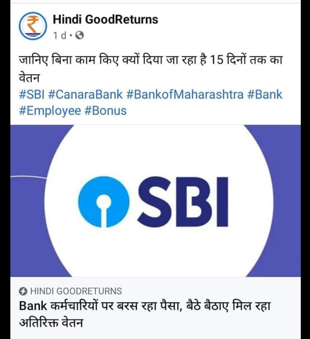 @GoodreturnsHi , कृपया ये बताने का कष्ट करें की @TheOfficialSBI के कर्मचारियों को किस प्रकार 15 दिन की सैलरी बैठे बिठाए बिना काम किये मिल रही है। या तो आप वजह बताएँ अन्यथा इस आर्टिकल के लिए माफी माँगे क्योंकि बेहद घटिया स्तर है आपकी पत्रकारिता का.. @idesibanda @SaranshSrv