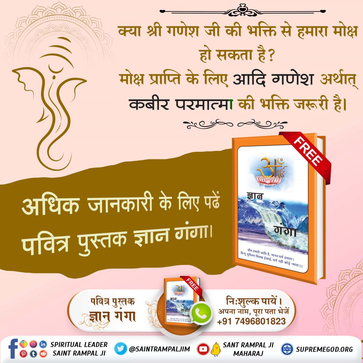 #StoryOfAadiGanesha क्या श्री गणेश जी की भक्ति से हमारा मोक्ष हो सकता है। मोक्ष प्राप्ति के लिए आदि गणेश अर्थात कबीर परमात्मा की भक्ति जरूरी है। अधिक जानकारी के लिए पढें पवित्र पुस्तक ज्ञान गंगा।