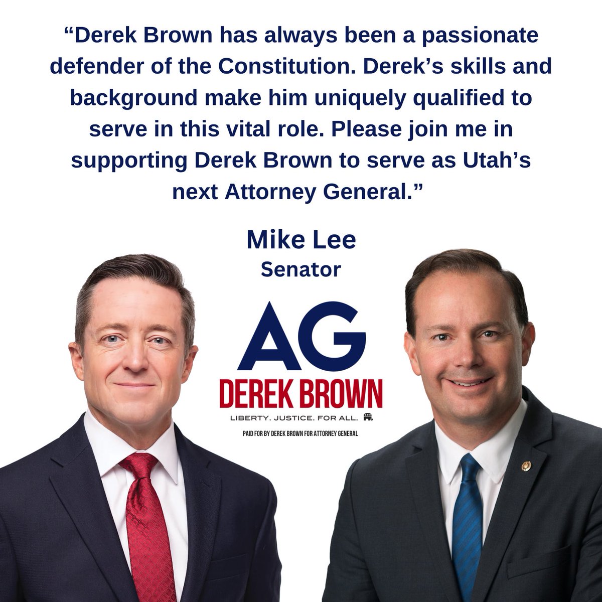 I’m honored to announce the trust and support of my friend, and Utah’s fighter for constitutional rights, Senator Mike Lee. #mikelee #derekbrown #db4ag #derekbrownforattorneygeneral #attorneygeneral #utah #utpol