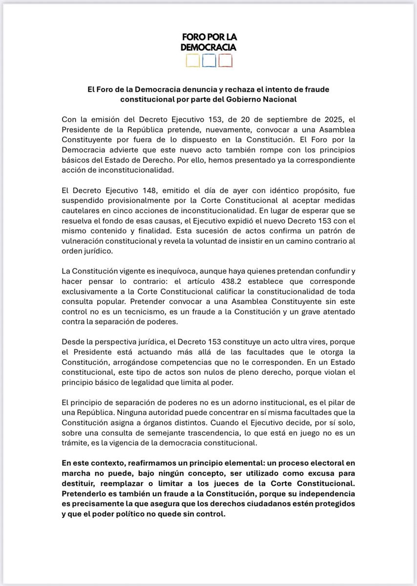 Fraude constitucional en lo conceptual, sapada pura en la práctica. Es el mismo decreto de convocatoria, insisten en atajo e incumplimiento constitucional y legal pero con nuevo número. El país y su futuro merecen mucho más, incluyendo un liderazgo responsable y democrático.…