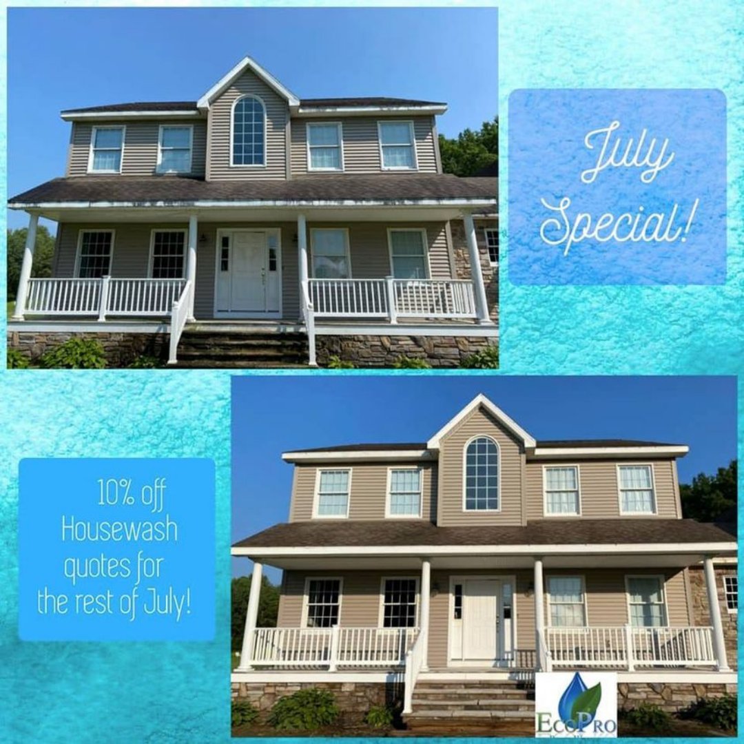 *Special Alert* 10% off all new housewash estimates that are quoted now until the end of July! *quotes must schedule a service date by the 1st week of August for discount to apply. Visit ecopropowerwashing.com or call 607-242-3310 #ecopropowerwashing #powerwashing