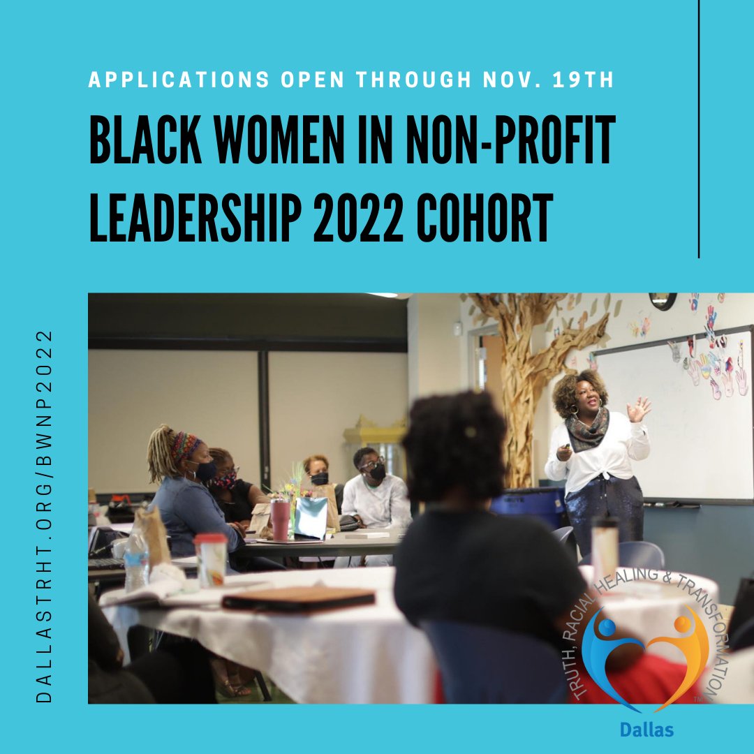 Black Women in Nonprofit Leadership (BWNPL) is a cohort offered by Dallas TRHT to provide an intentional racial healing space for Black women in the nonprofit sector. We are now accepting applications for the 2022 cohort: dallastrht.org/bwnp2022/ #howweheal