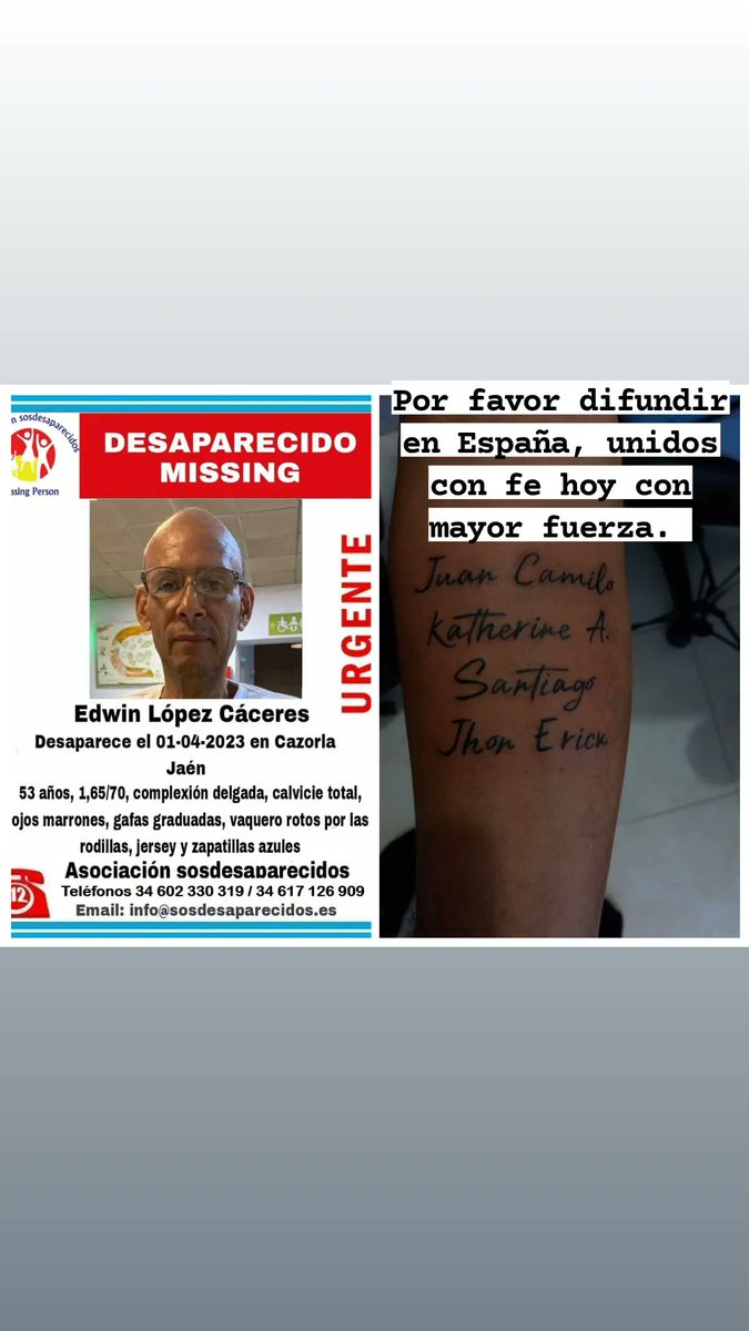 Hoy se cumplen 10 meses desde que Edwin López Cáceres desapareció saliendo del Hospital Alta Resolución de Cazorla Jaén en España. Seguimos orando por su vida y regreso a casa. Por favor, compartir con contactos en toda España. Gracias.