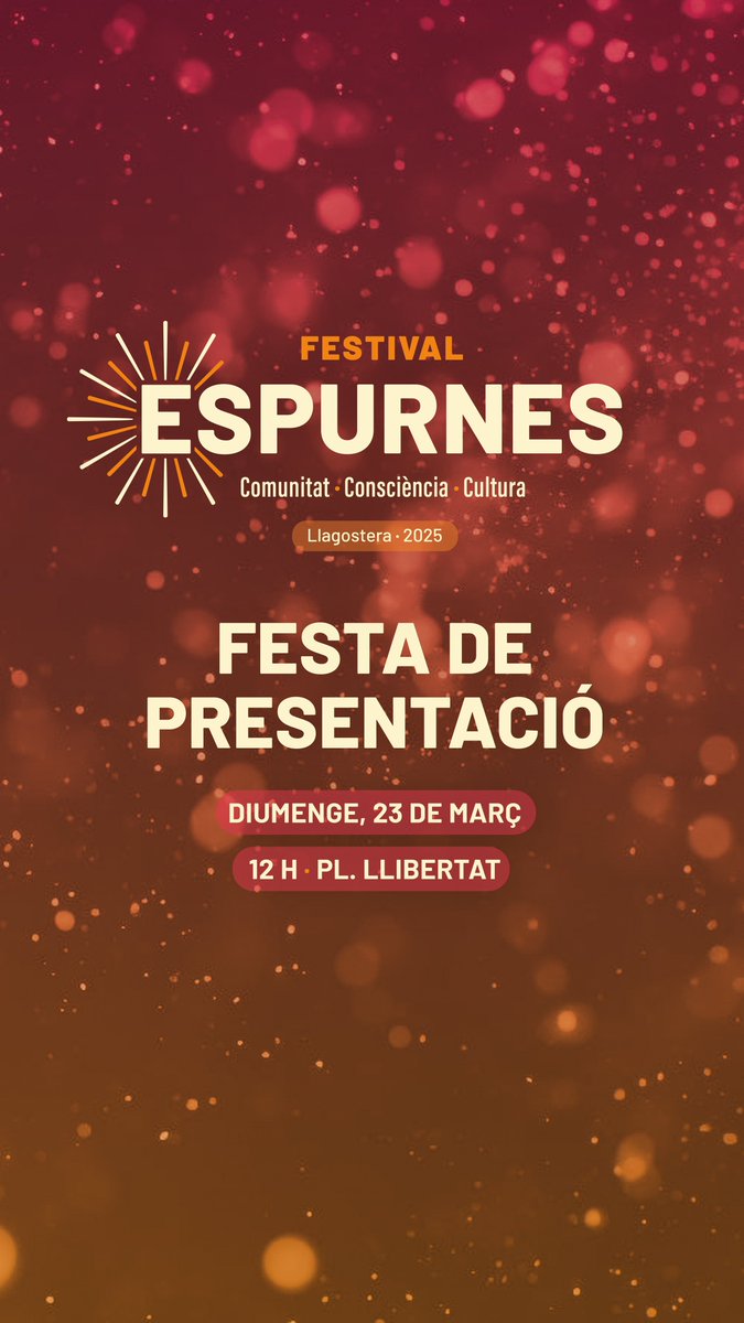 ‼️ 𝐂𝐀𝐍𝐕𝐈 𝐃𝐄 𝐃𝐀𝐓𝐀! Les previsions meteorològiques adverses ens obliguen a ajornar la presentació del Festival Espurnes 2025. L’acte de presentació es celebrarà, amb el mateix format i ubicació, el diumenge 23 de març a les 12h! 🎇 Us hi esperem!