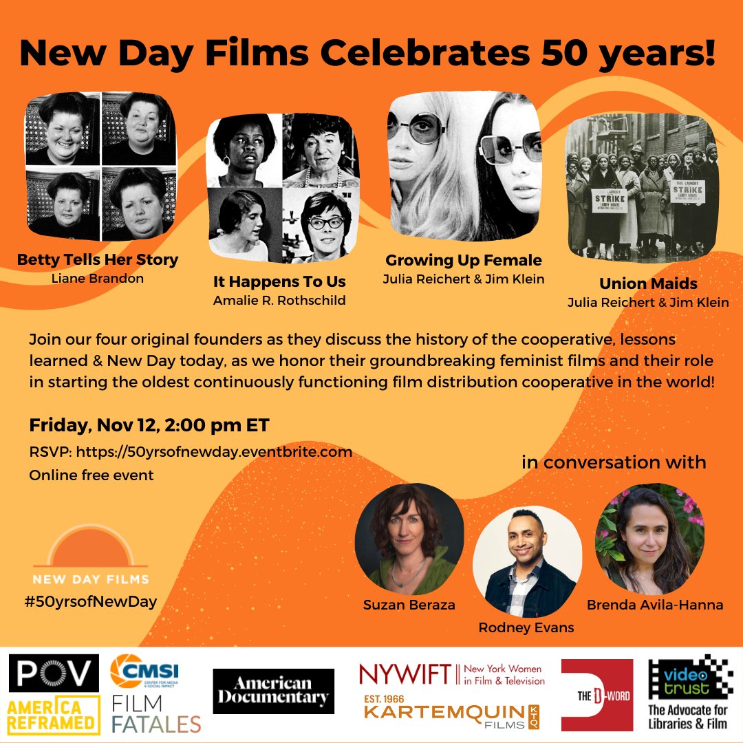 DYK that the #NewDayFilms founders’ historic films and papers are now part of the @newdayfilms Collection in the Archive at @duke University? Celebrate #50YrsOfNewDay on Friday, Nov 12 @ 2PM ET/ 11AM PT, RSVP @ tinyurl.com/NewDay50 ASL/CART provided #DocumentaryHistory