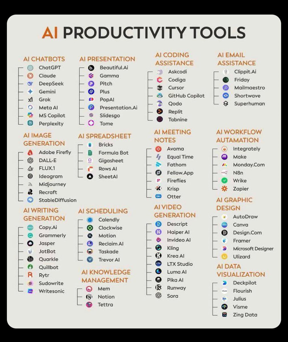 Here’s my top list of 72+ AI tools to help you get months of work done in just minutes 1. Research - ChatGPT - Claude - DeepSeek R1 - Gemini - Abacus - Perplexity 2. Image - Midjourney - Dall E-3 - Flux - Stability AI - Grok 3. CopyWriting - Rytr - Copy AI - Writesonic -…