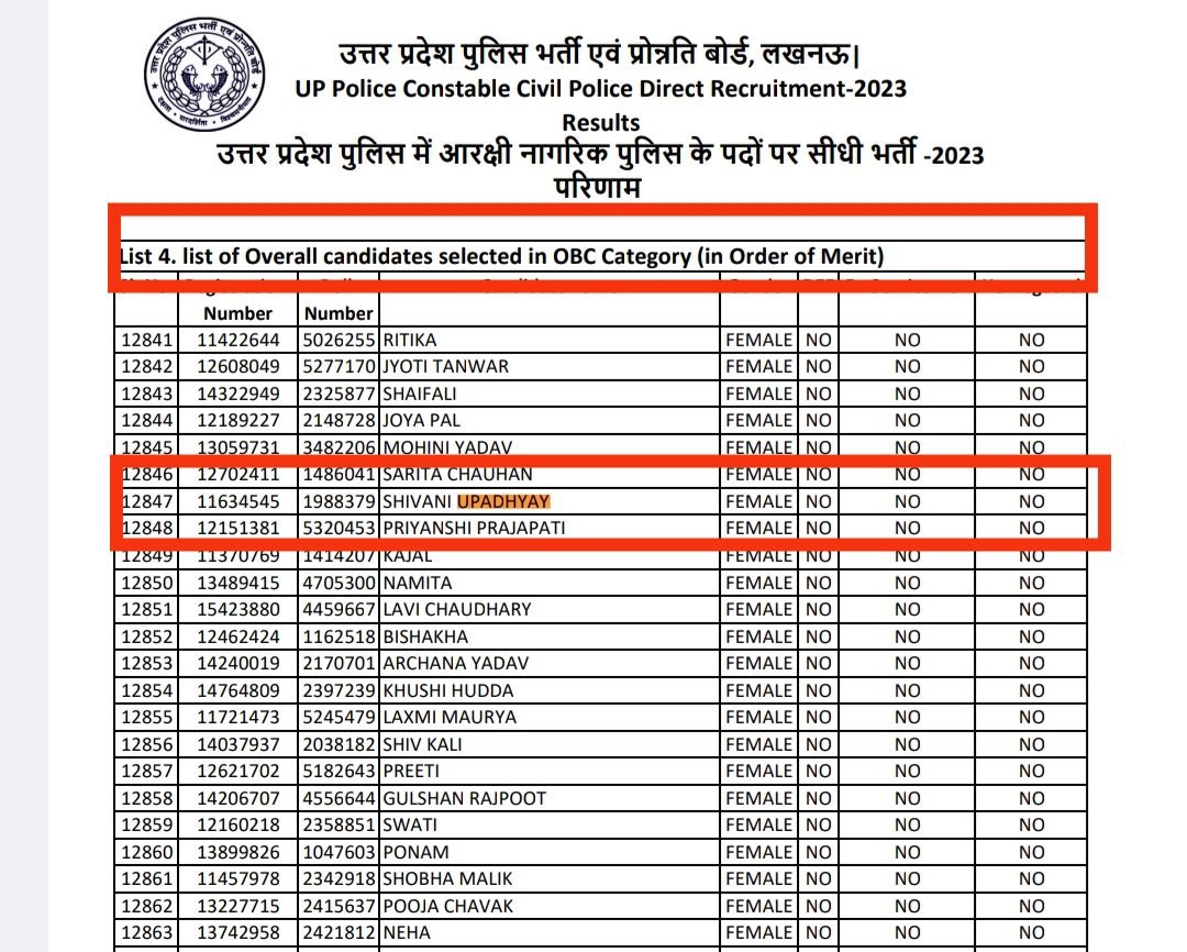उत्तर प्रदेश पुलिस भर्ती परीक्षा-2023 में शिवानी उपाध्याय जी OBC कोटे से सफल हुई हैं…पूरे OBC समाज में ख़ुशी की लहर है…बधाई.💐