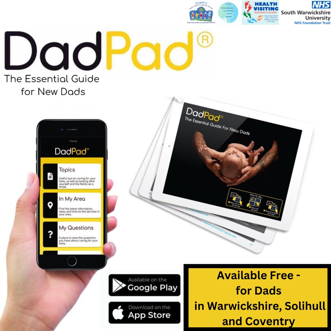 Are you a new dad, or dad-to-be or do you know a new dad or dad-to-be? Have you heard of DadPad? DadPad is an evidence-based app accessible to all fathers living in Solihull, Warwickshire and Coventry. To find out more visit: thedadpad.co.uk