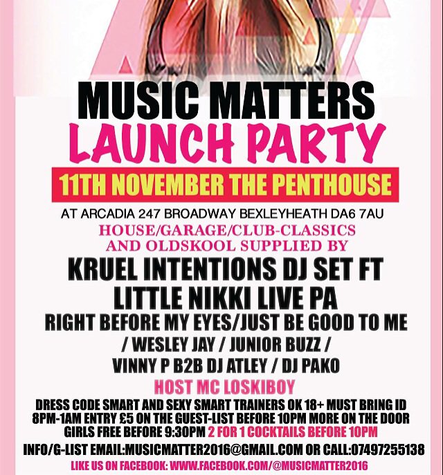 This Friday music matters at Arcadia Bexleyheath G-list: [email protected]