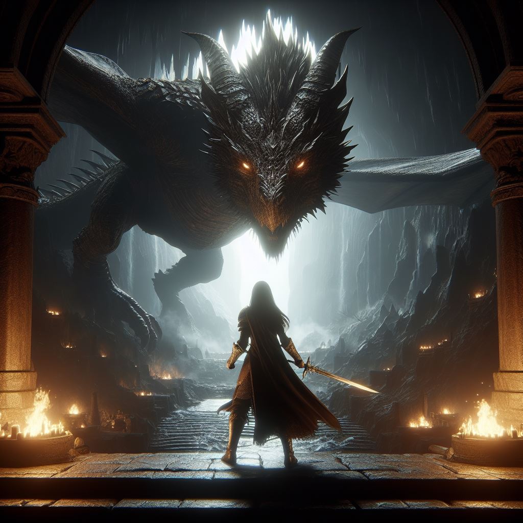 @rio_twrest #AIイラストレイド 29日2回目の投稿です! 宜しくお願いします(''◇'')ゞ ※前回に引き続き。 前回→ x.com/aicraftblackca… 👸「よし!ついに追い詰めたぞダークドラゴン!!」 🐉「フン、我の前に立つことは誉めてやろう!そして焦土の塵となれ!」 #AIArtwork