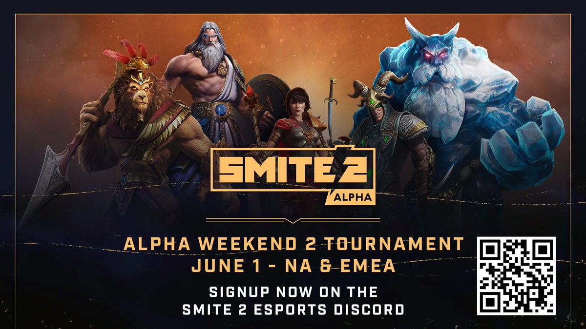 What could make SMITE 2's Alpha Weekend 2 even more exciting? Esports! That's right, we're hosting a SMITE 2 Tournament on Saturday June 1! Join up, and get ready to showoff. Check below for more details. 🏆 smite2.com/news/alpha-wee…