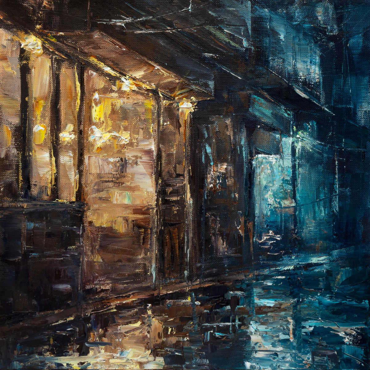 Dark City Oil Painting, Urban Night Artwork, Cityscape Wall Decor, Hand-painted Art, Modern Textured Gallery Piece, Street Lights Reflection inkrabbitdesigns.etsy.com/listing/431042… #DarkCity #UrbanNight #OilPainting #CityscapeArt #ModernArt #HandPainted #TexturedArt #GalleryWall #StreetLights