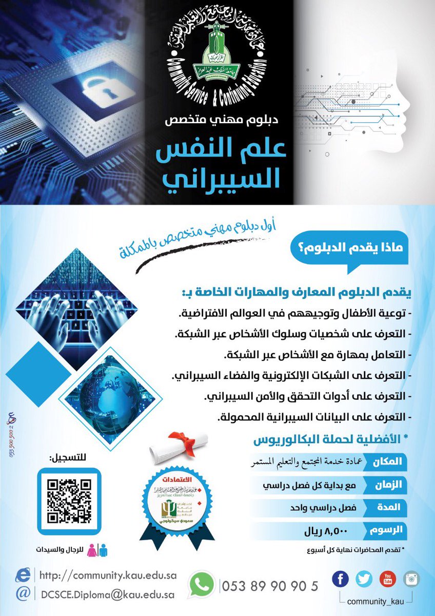 #دبلوم_علم_النفس_السيبراني بجامعة الملك عبدالعزيز من بداية الفصل القادم للتسجيل اضغط الرابط التالي community.kau.edu.sa/Pages-dopspr.a…