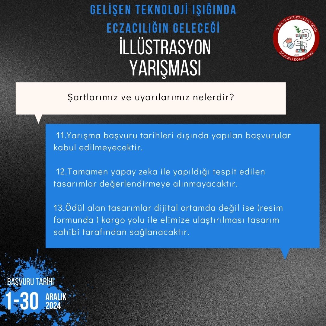 Yarışmamızın şartları ile ilgili detaylara yana kaydırarak ulaşabilirsiniz.Katılımlarınızı bekliyoruz.✨🤩 Aklınıza takılan herhangi bir soru olması durumunda Instagram, X, Linkedln hesaplarımızdan bize ulaşabilirsiniz.🙏🏻