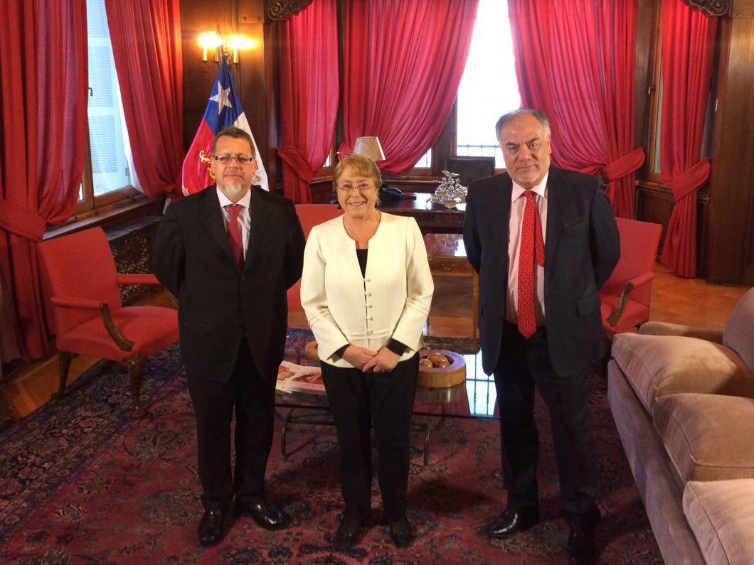 Ahora: Pdta. Bachelet se reúne con los presidentes del Senado y Diputados para abordar tema de #MejoresPensiones.