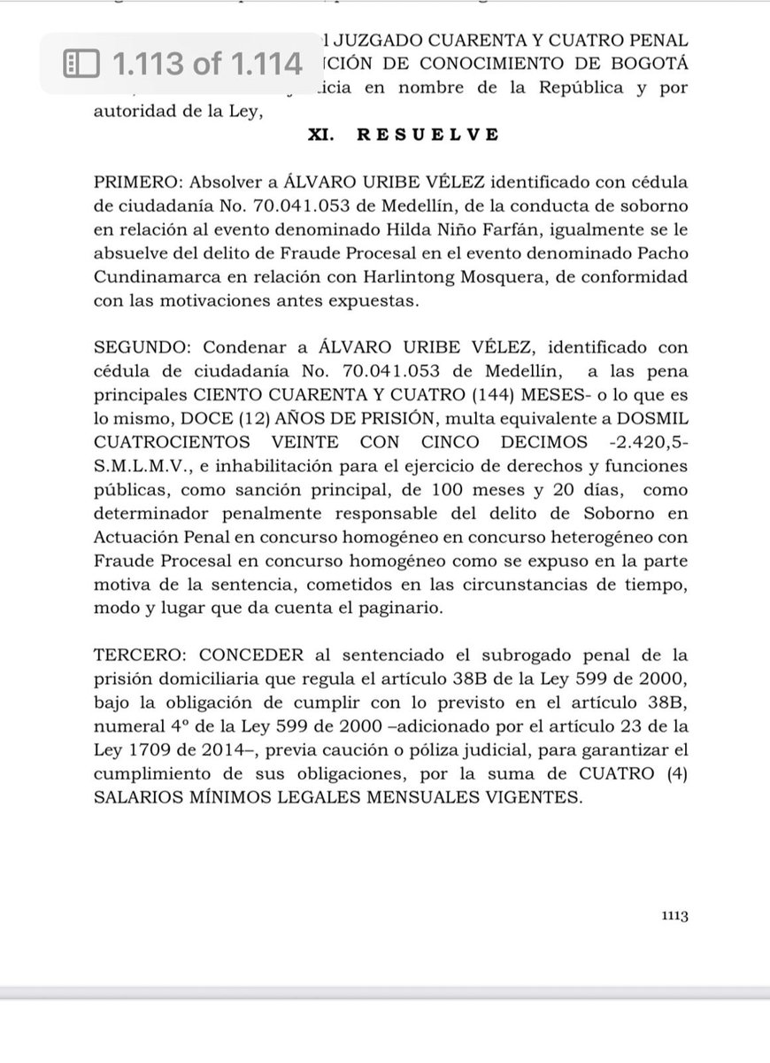 🚨Este video tiene que ser viral y difundido por todas las redes. La prensa no lo hará, ustedes ya lo saben. El momento exacto en que la jueza Sandra Heredia hace el anuncio condenatorio contra el expresidente Álvaro Uribe Vélez, 12 años de prisión domiciliaria y el pago de una…