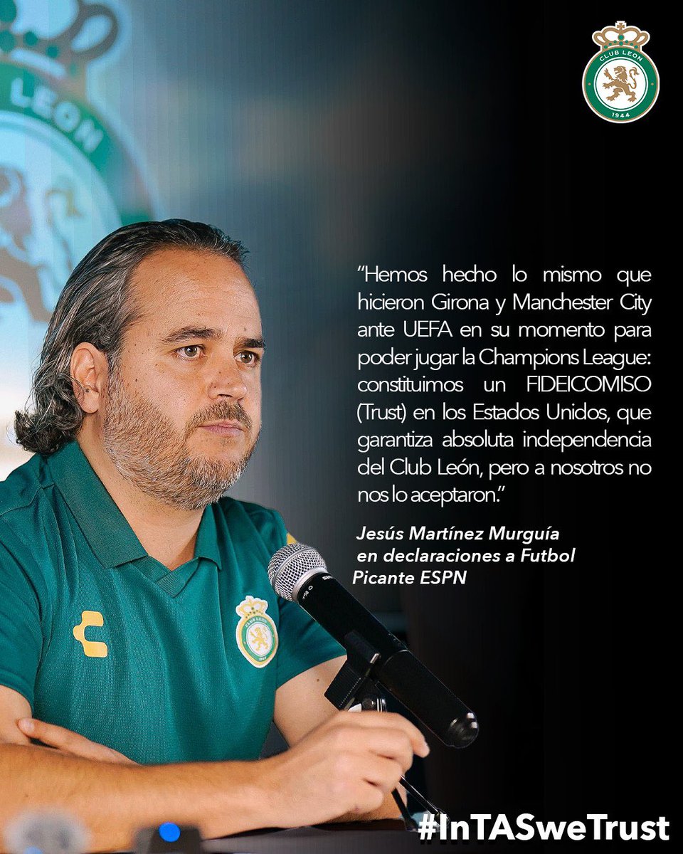 DECLARACIONES Jesús Martínez Murguía Presidente Club León. #InTASweTrust