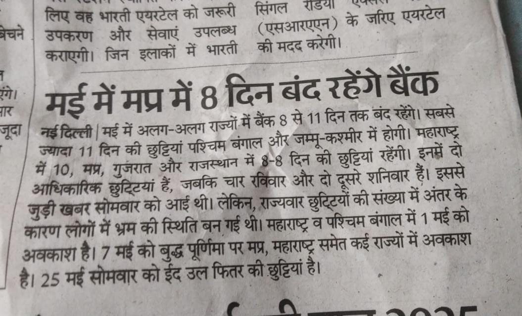 सभी मीडिया कल के अखबार में अपनी गलती स्वीकारते हुए स्पष्टीकरण दें की बैंक में #13Days की छुट्टी नहीं है। अन्यथा हम प्रशाशन से अनुरोध करेंगे कि भ्रामक खबर फैलाकर लॉकडाउन तोड़ने के लिए उकसाने के प्रयास में इनपर उचित कार्रवाई की जाए। #FakeNewsAlert @DainikBhaskar @JagranNews