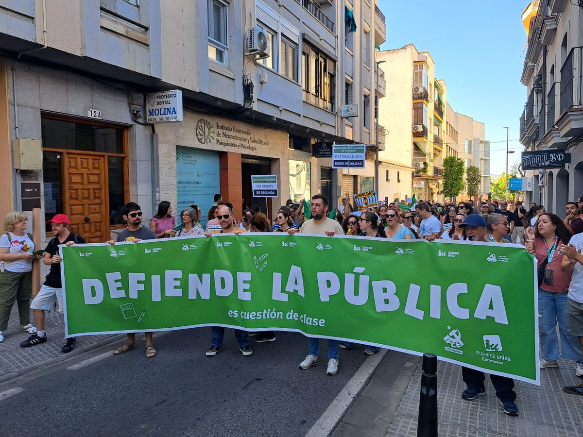 Camaradas del @PCEExtremadura, y compañeras y compañeros de @IuExtremadura, participamos en la manifestación de apoyo a los docentes extremeños por la equiparación salarial.