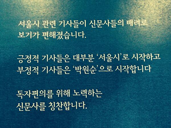 예리한? 분석이네요^^ 지금 뜨끔!한 신문들 누규~?! “@wonsoonpark: 어디서 어디서 이런 글을 보았는데 사실인가요? 그럴 리가 없겠지요. 기사에 일희일비하지 않고 더욱 열심히 뛰겠습니다^^ ”