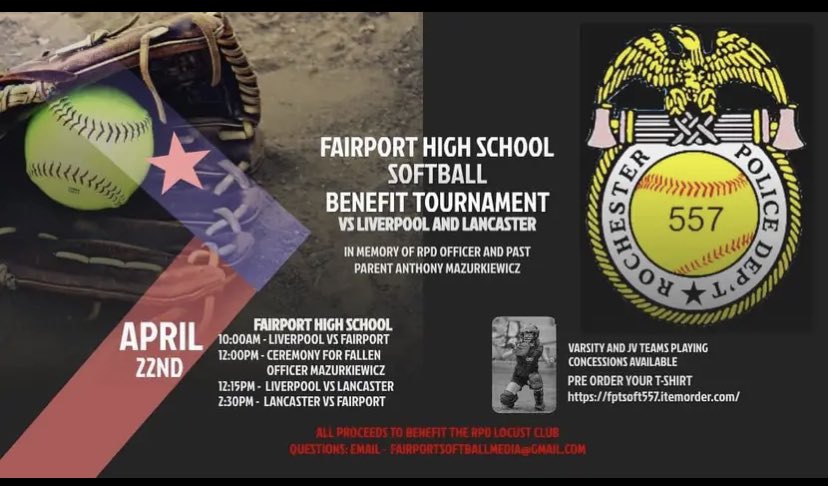 Saturday @FptSoftball did something special. They hosted @LHS_Legends and @LCSDAthletics, but importantly honored fallen @RochesterNYPD officer Anthony Mazurkiewicz. @samfromtv put together a story, as I spoke with @FCSDSports Captain Magdalena Brie, Fairport Softball Coach...1/2