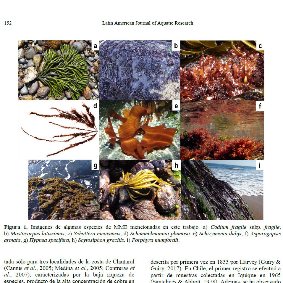 Nueva contribución! "Macroalgas exóticas en la costa de Chile continental: patrones espaciales y temporales en el proceso de invasión". Villaseñor-Parada, C., Pauchard A., Ramírez, M. E. & Macaya E. C. 2018. Link lajar.cl/pdf/imar/v46n1… 😀
