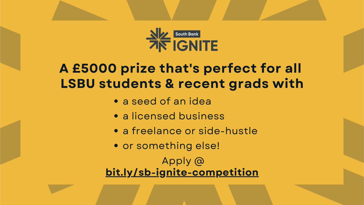 📢Are you a recent graduate with a business idea that provides a solution to a real-world problem? Check out LSBU Enterprise's #SouthBankIgnite #competition and enter by April 2 for the chance to win £5,000 🙌 more information here 👉 loom.ly/frmoJGI