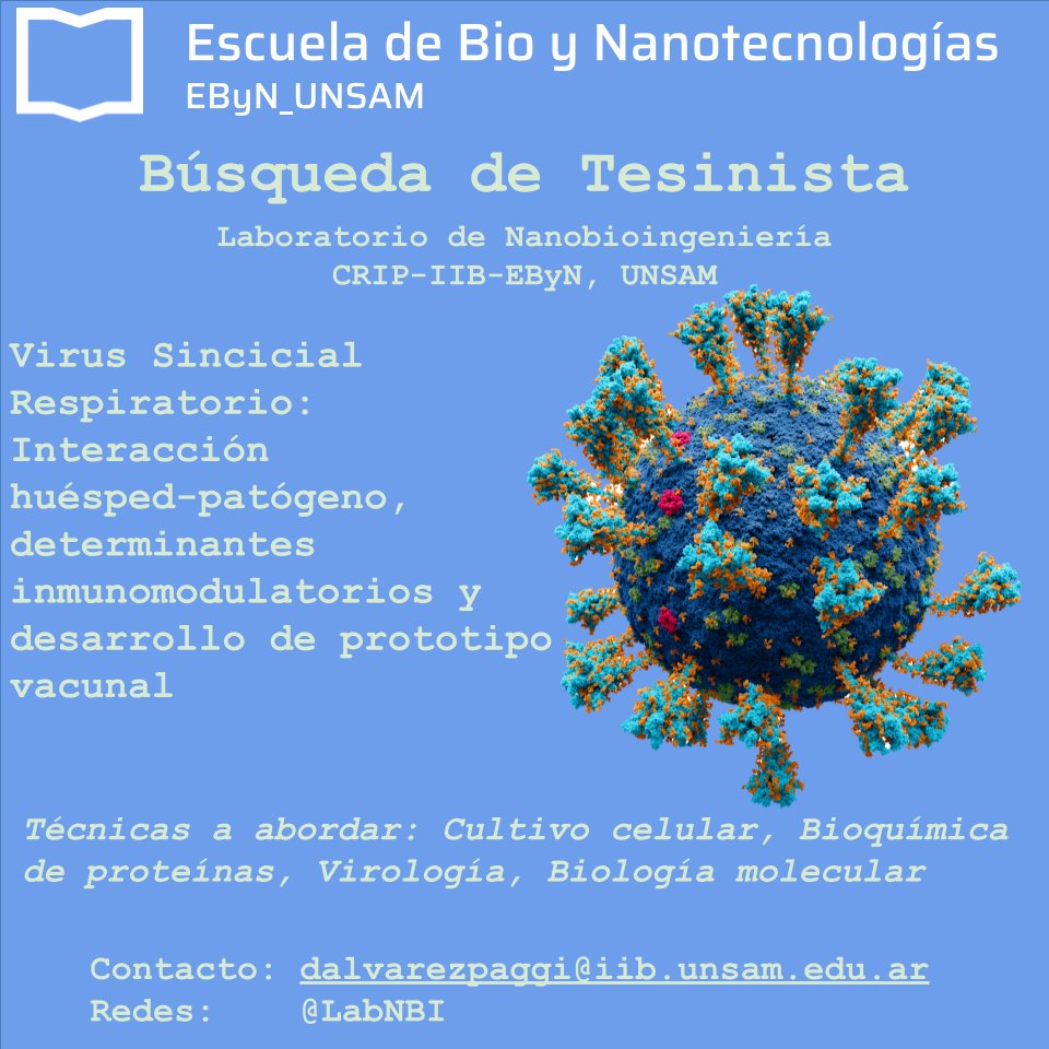Estamos buscando tesinista en @ebynunsam para trabajar en un proyecto interdisciplinario de interacción huesped-patogeno en virus sincicial respiratorio en el CRIP-IIB!