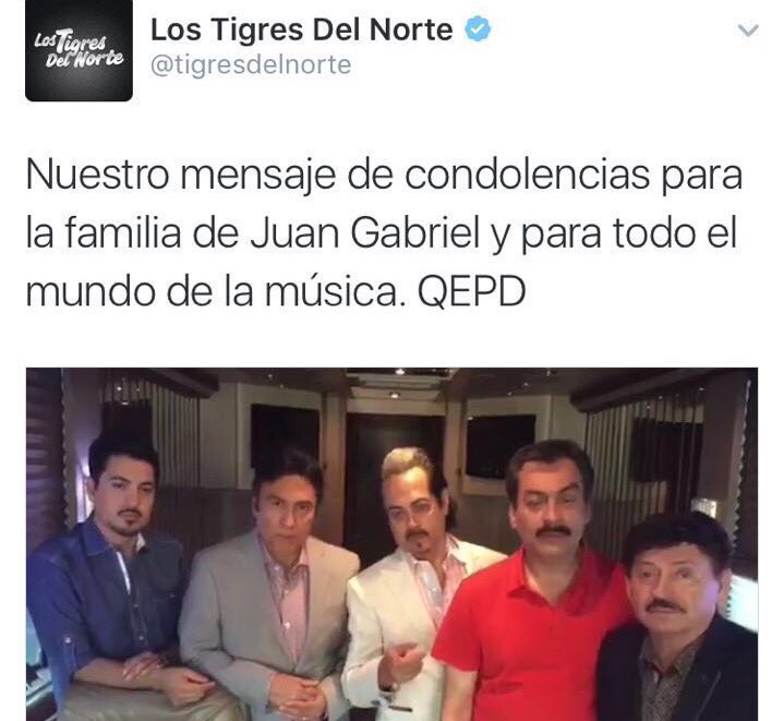 .@tigresdelnorte lamentan la muerte de Juan Gabriel