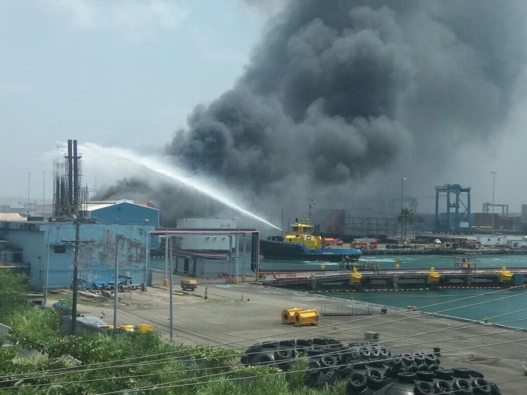 #EnVideo @BCBRP atienden emergencia en Puerto Manzanillo, Colón. Personal de los @bomberoscolon @canaldepanama en labores de extinción.