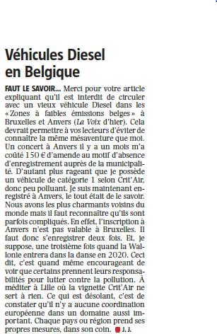 On en roule plus au #diesel comme on veut à #Bruxelles ou à #Anvers : un lecteur raconte ce qu'il lui en a coûté. #lalettredujour @lavoixdunord