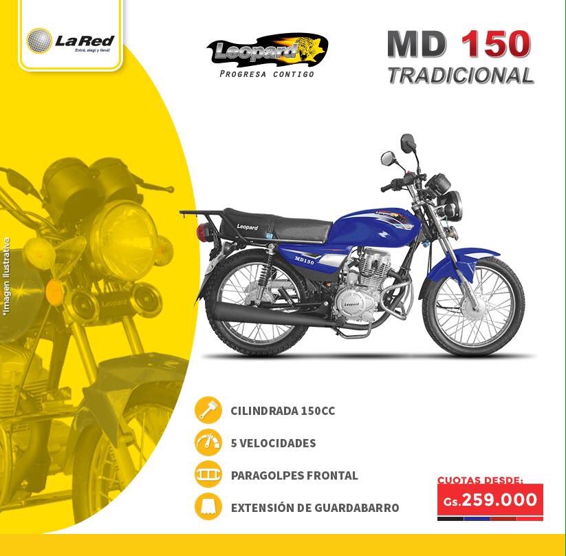 Decide los lugares donde quieras ir que nosotros te ponemos la moto. Adquirí la MD 125 Tradicional en accesibles cuotas 249.000gs.