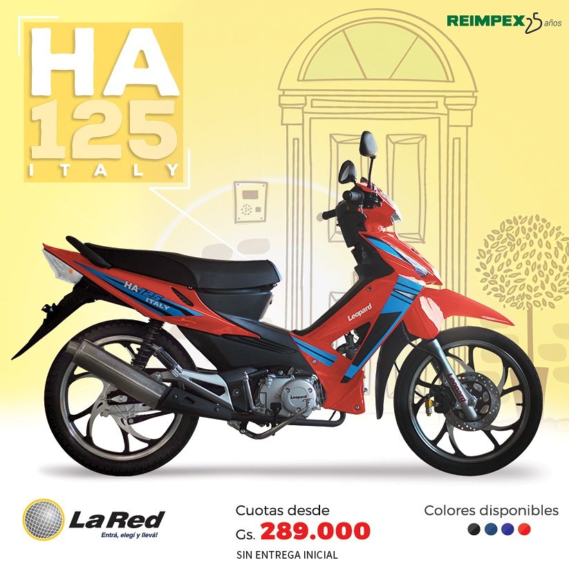 La moto HA 125 que te ofrece más comodidad en tus caminos.En accesibles cuotas de 289.000gs ¡Te esperamos en tu sucursal más cercana!
