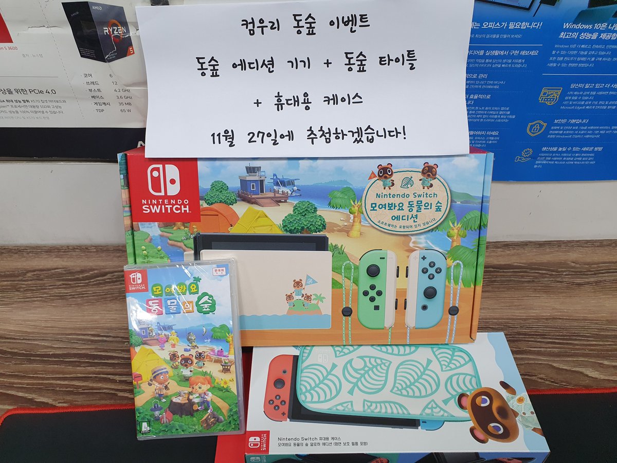 397번째 이벤트 입니다 동물의 숲 에디션 본체 + 동물의 숲 타이틀 + 동물의 숲 휴대용 케이스 (알로하 에디션) 로 진행하겠습니다 팔로우 + 리트윗 해주신 분들 중 한분 추첨해서 드리겠습니다! 12월 28일에 추첨하겠습니다! !!모여봐요!!