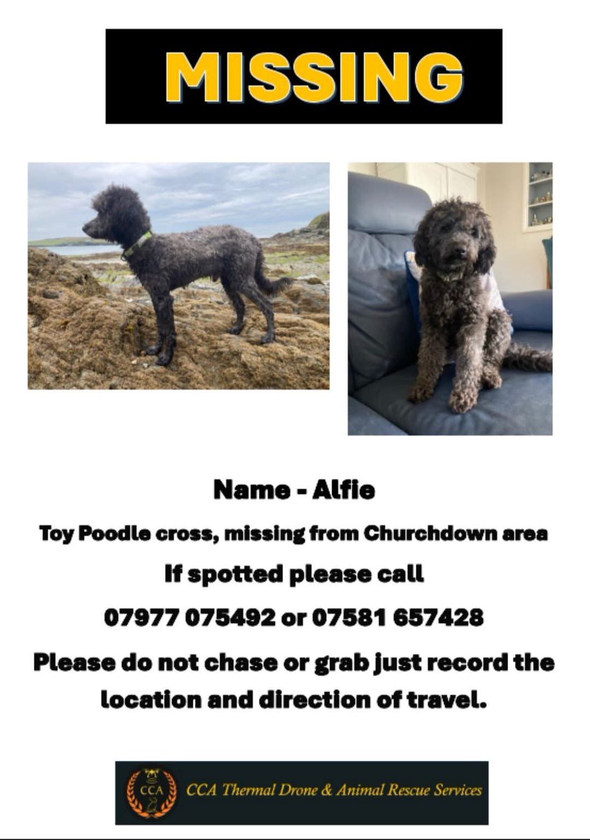 #rescue ALFIE is still missing. He has been missing since 12 July from Brookfield Road, Churchdown. He is a rescue from Cornwall & doesn't know the area. He is likely to be scared, hot and thirsty. If spotted please do not attempt to catch him but call the number on the poster🙏 https://t.co/c5042r9TsY