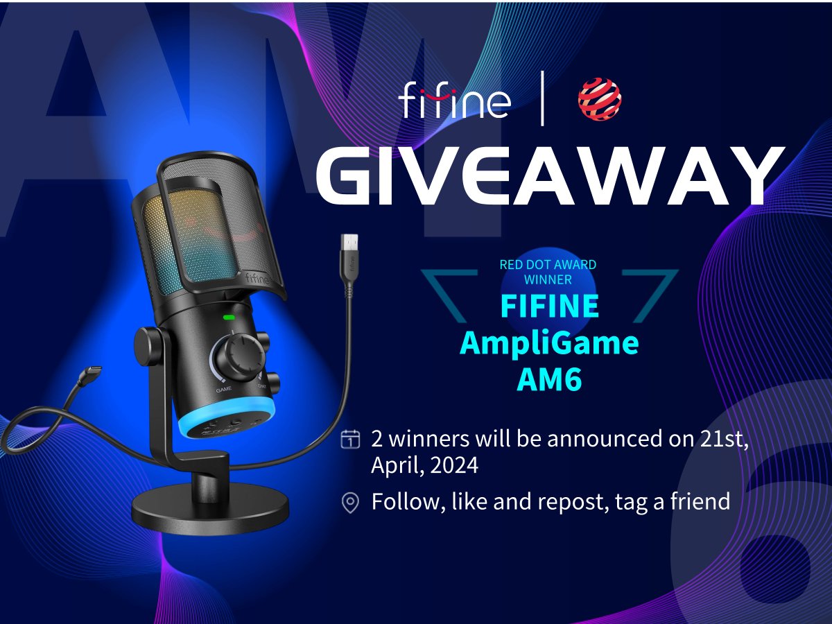 [𝐆𝐈𝐕𝐄𝐀𝐖𝐀𝐘] 🔴We are thrilled that FIFINE AmpliGame AM6 won Red Dot Design Award 2024, we can't wait to share the honor with you by giving away 2 sets of AM6! ✅Follow @FIFINEMIC 💜Like & Repost 👥Tag a friend to increase your chances of winning Ends on 21th April!
