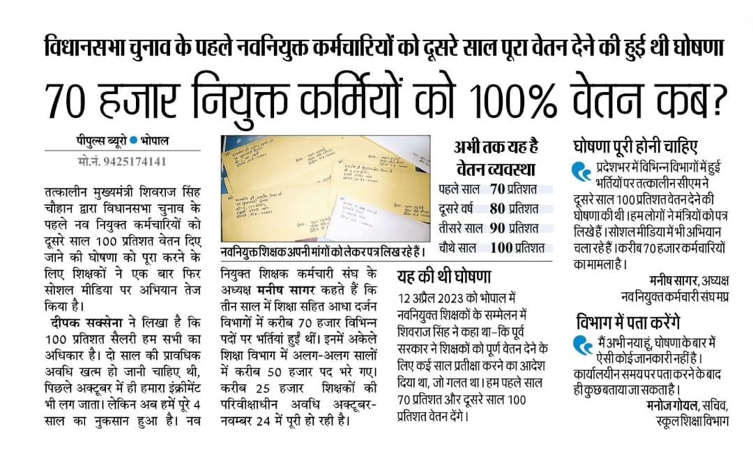नवनियुक्त कर्मचारियों का हल्लाबोल: 100% सैलरी के लिए सोशल मीडिया हैंडल पर #we_demand_full_salary_mp को लेकर हो रहीं हैं, हजारों पोस्ट। #मध्यप्रदेश_सौ_फीसदी_वेतन_दो #we_demand_full_salary_mp @CMMadhyaPradesh @DrMohanYadav51 @ChouhanShivraj @MPTakOfficial @BansalNewsMPCG