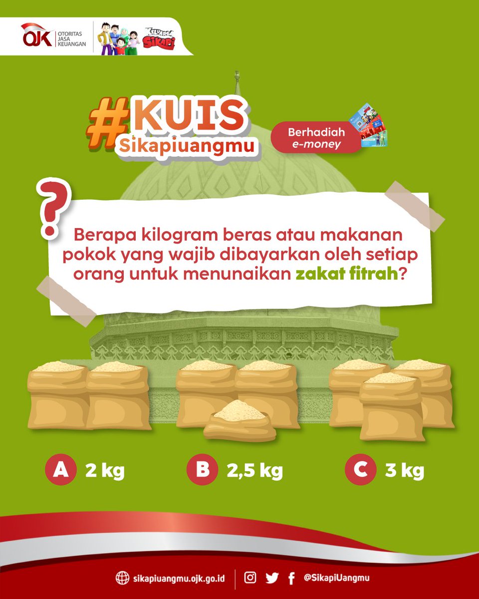 Hai Sobat Sikapi tidak terasa kita sudah di penghujung bulan Ramadan. Jangan lupa bayar zakat ya Sobat. Nah besaran zakat fitrah yang wajib Sobat bayarkan menjadi jawaban kuis kali ini. Simak konten Sikapi sebelumnya ya! Tulis jawaban di kolom komentar dan mention 3 Sobat lainnya