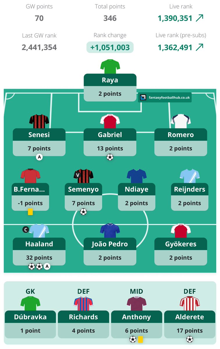 756 Followers 834 FollowingAll things FPL 🏆 one gameweek at a time. Aiming for top 100k this year follow me for my journey 👀 Podcast Owner of -@teatacticsfpl
