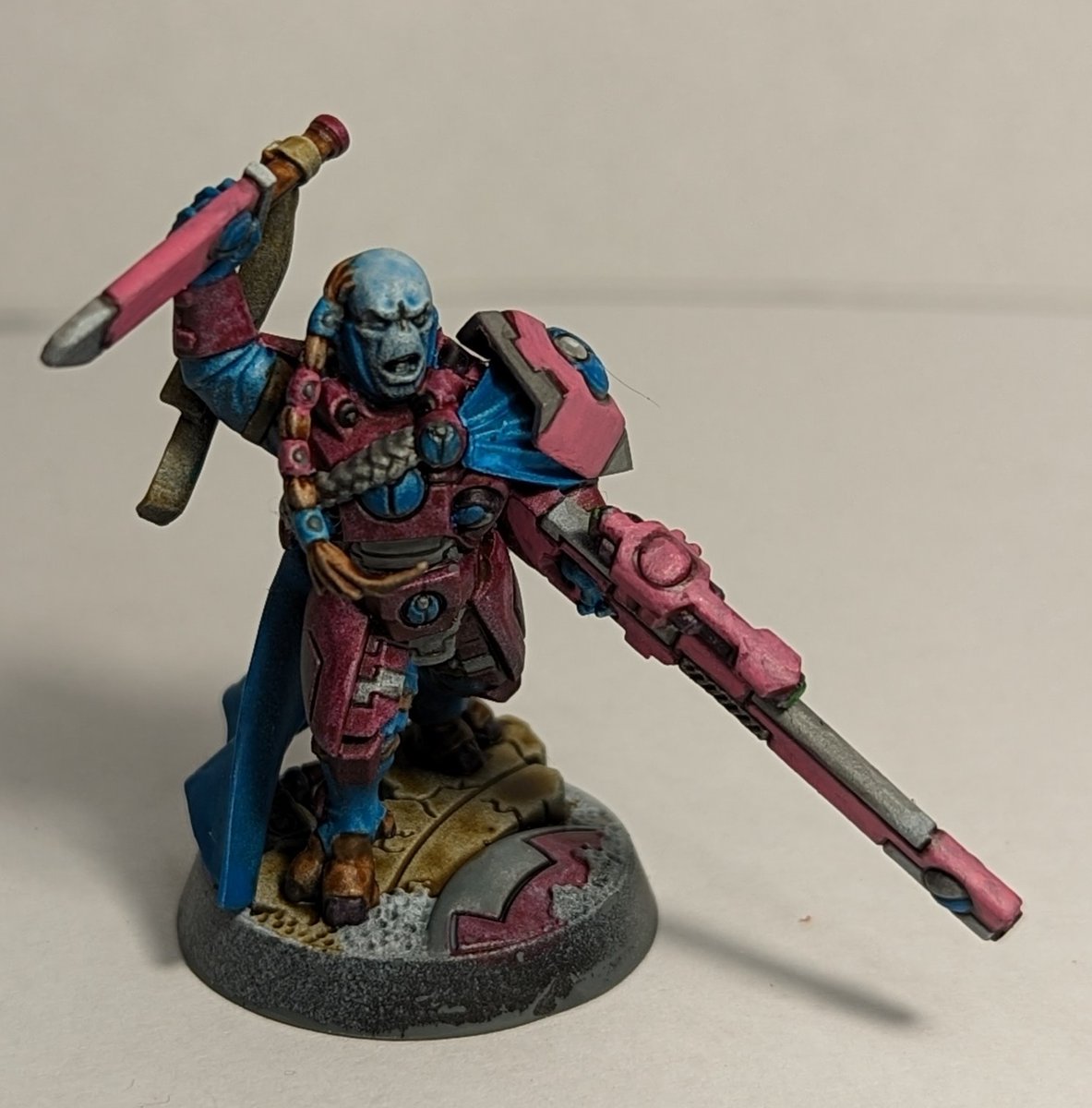 Pink on the Coldstar came out darker than I would have liked. But attempts to lighten it seem to have worked well enough. #WarhammerCommunity #Tau