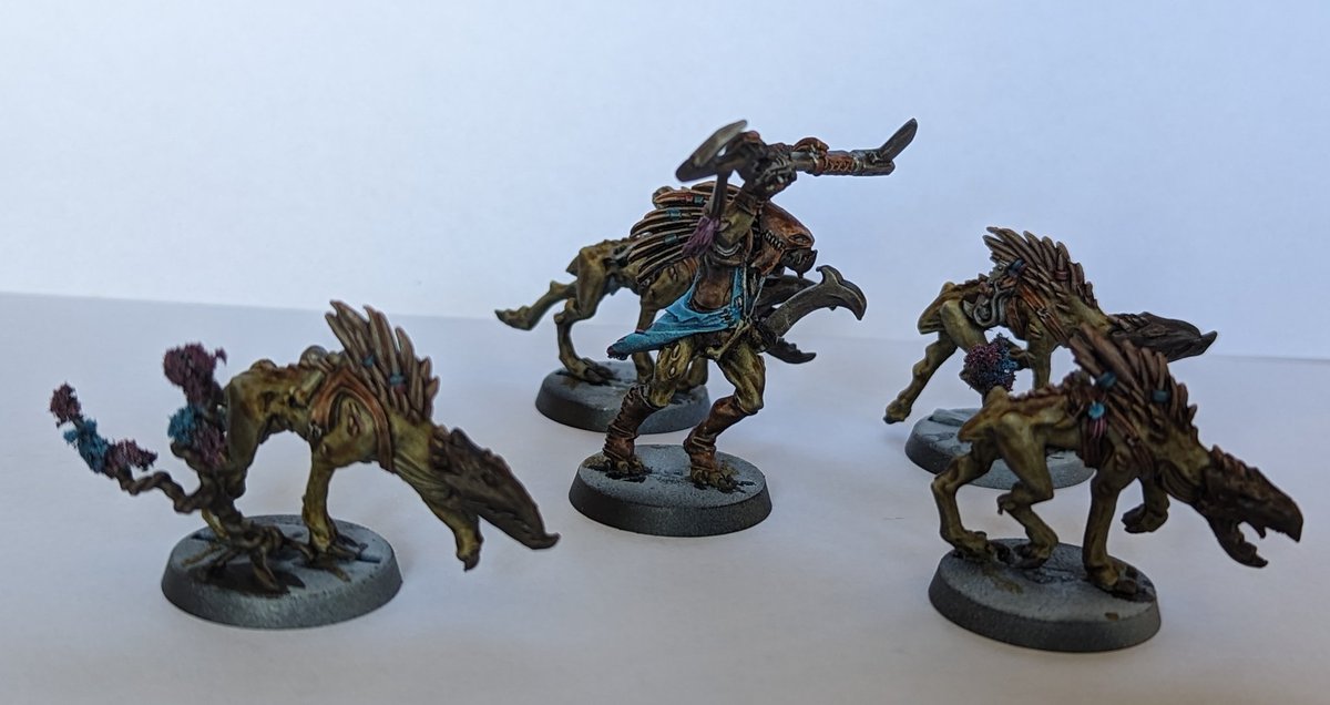 Finally managed to pick up a paint brush after a busy week. Just got their bases to go, but this Shaper and his puppies are almost ready for the battlefield. #WarhammerCommunity #Warhammer40K