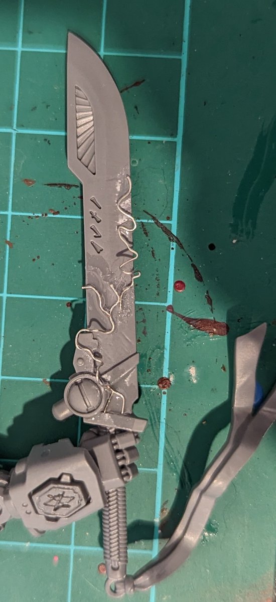 Today's hobby time was spent sketching out a 3D energy crackle effect on Farsights sword using wire. Would love to hear some feedback. #WIP #WarhammerCommunity
