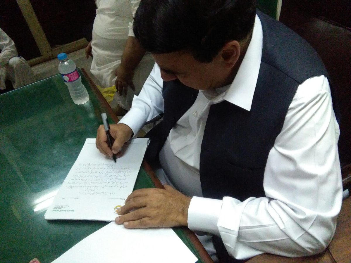 #WeStandWithSheikhRasheed Writing an Application in Police station against Attack on Lal Haveli.
