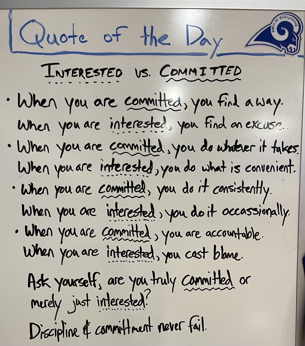 Are you interested or committed? Most will claim they are ‘committed’, but their actions show otherwise. You can’t sit on the fence of success. You find a way to make things happen by practicing discipline every day