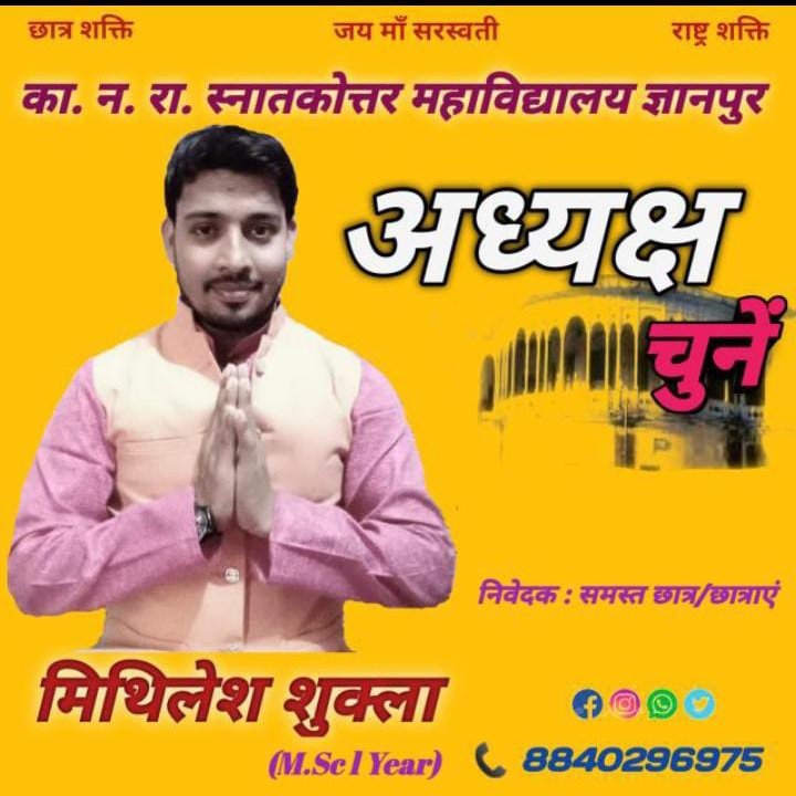 छात्र संघ : अध्यक्ष चुनें आपका 🙏 मिथिलेश शुक्ला Joined July 2021-
